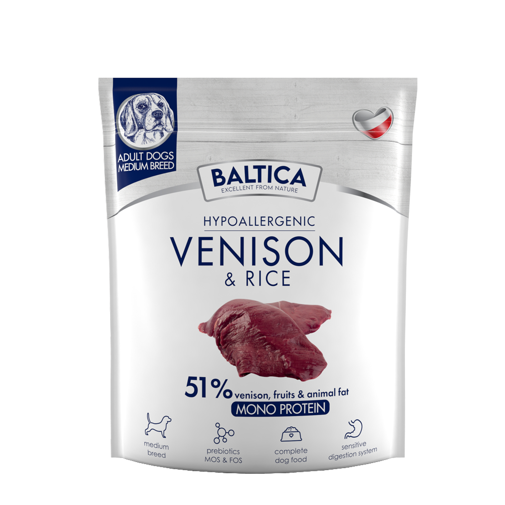 Baltica Adult Venison & Rice M 1 kg – Hipoalergiczna karma sucha dla psów ras średnich