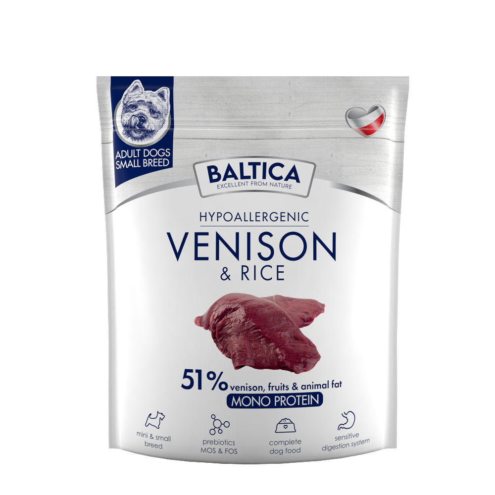 Nasi eksperci z zakresu żywienia i dietetyki weterynaryjnej dołożyli wszelkich starań, aby receptura karmy Baltica Venison & Rice Hypoallergenic wychodziła naprzeciw najważniejszym potrzebom zdrowotnym i z dnia na dzień poprawiała komfort życia psów borykających się z problemami z zakresu odporności, układu pokarmowego czy utrzymania prawidłowej masy ciała.