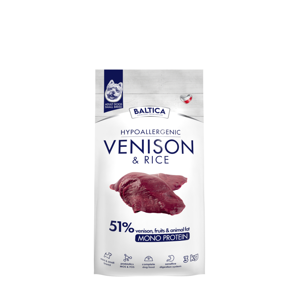 Baltica Adult Venison & Rice S 3 kg – Hipoalergiczna karma sucha dla psów małych ras