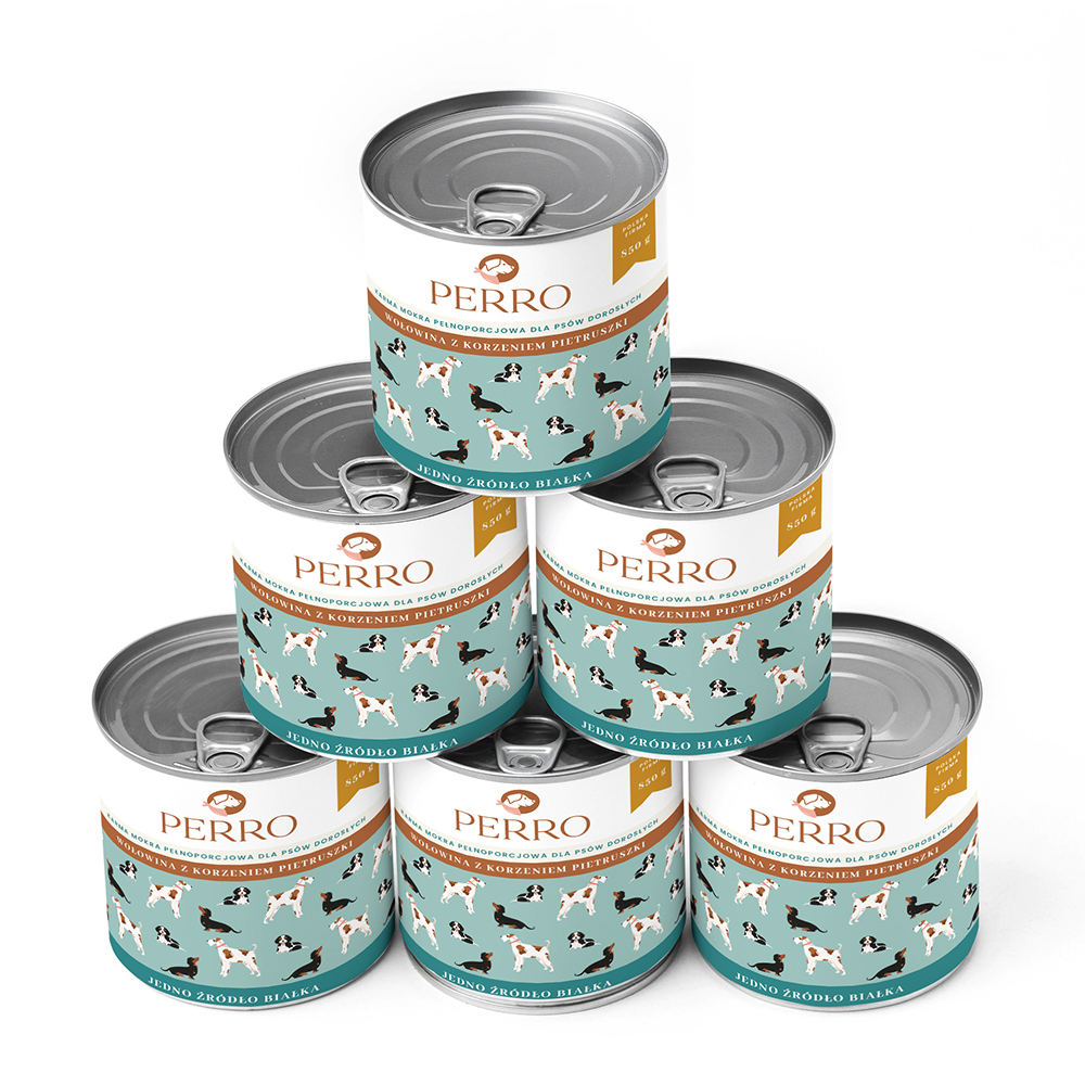 PERRO Wołowina z korzeniem pietruszki - zestaw 6 x 850g - karma mokra, monobiałkowa formuła dla psów dorosłych