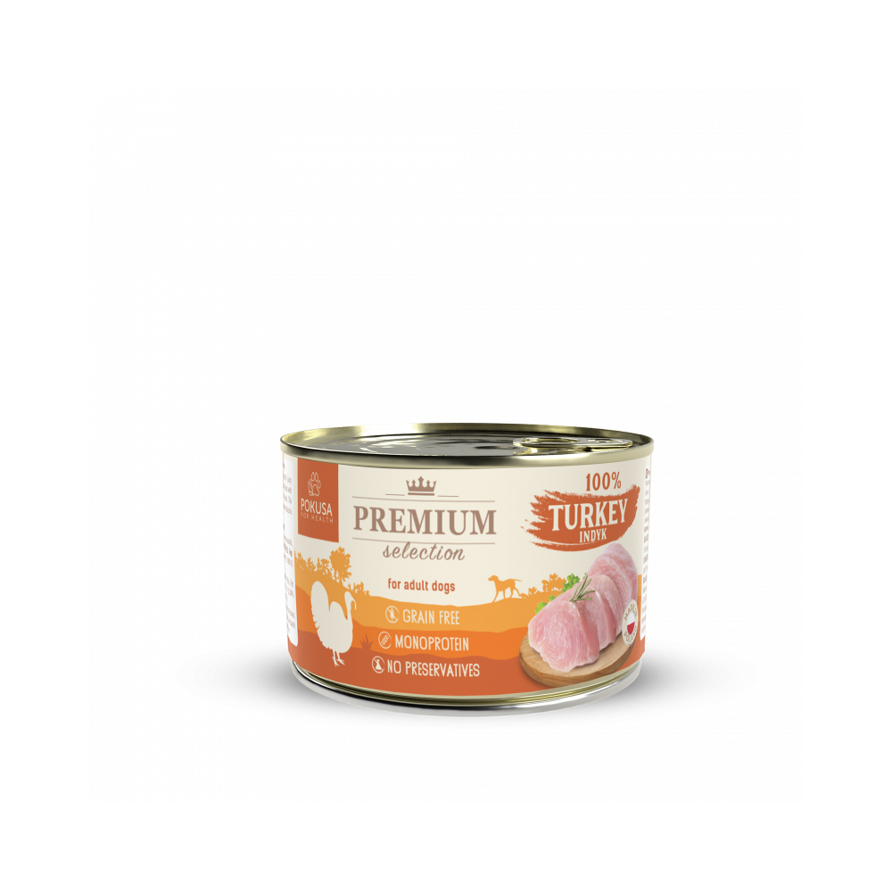 Pokusa Premium Selection 100% indyk to mokra karma uzupełniająca dla psa z soczystego mięsa indyka: