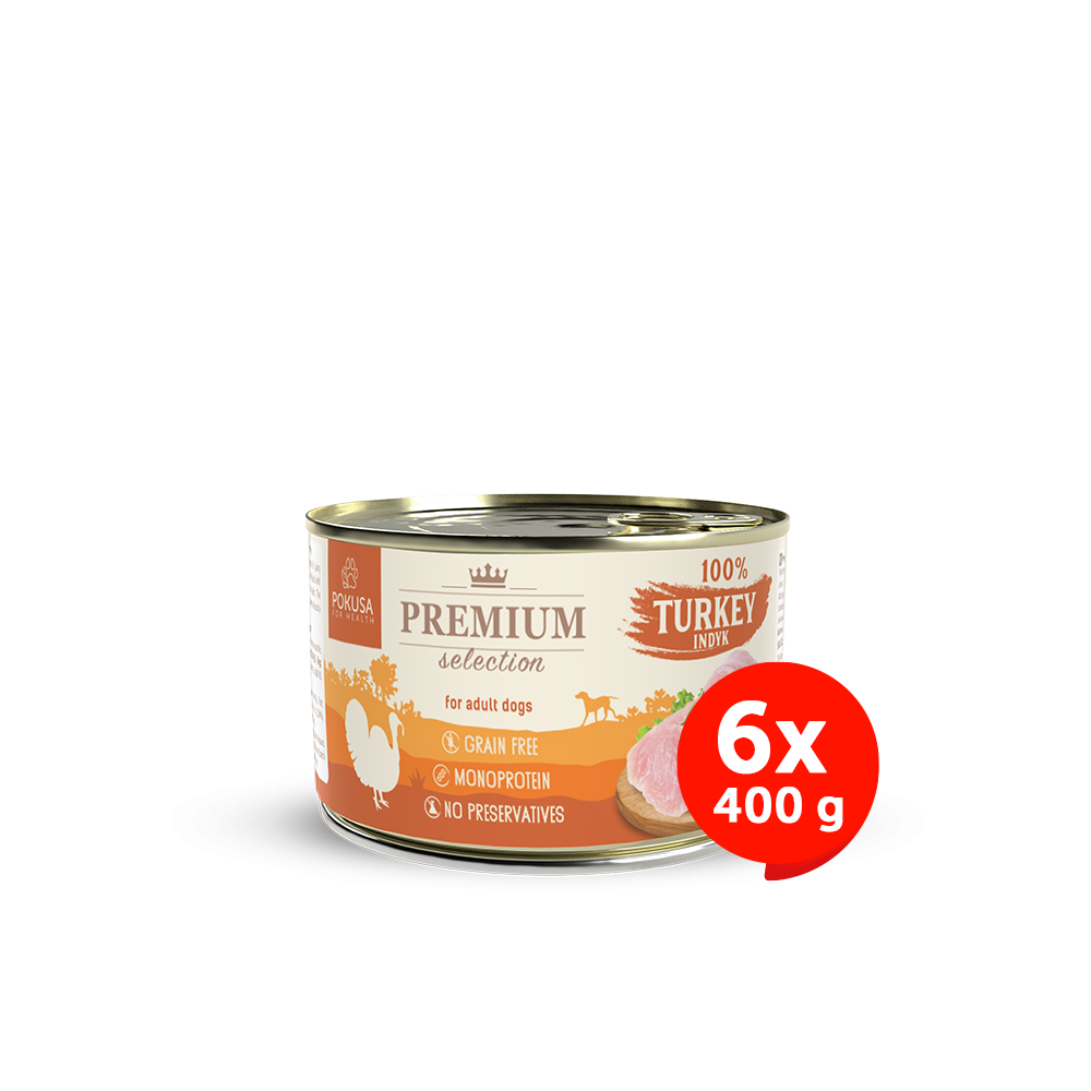 Pokusa Premium Selection Indyk 100% 6x400g - karma mokra dla psa, zestaw
