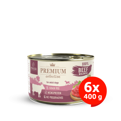 Pokusa Premium Selection Wołowina 100% 6x400g - karma mokra dla psa, zestaw