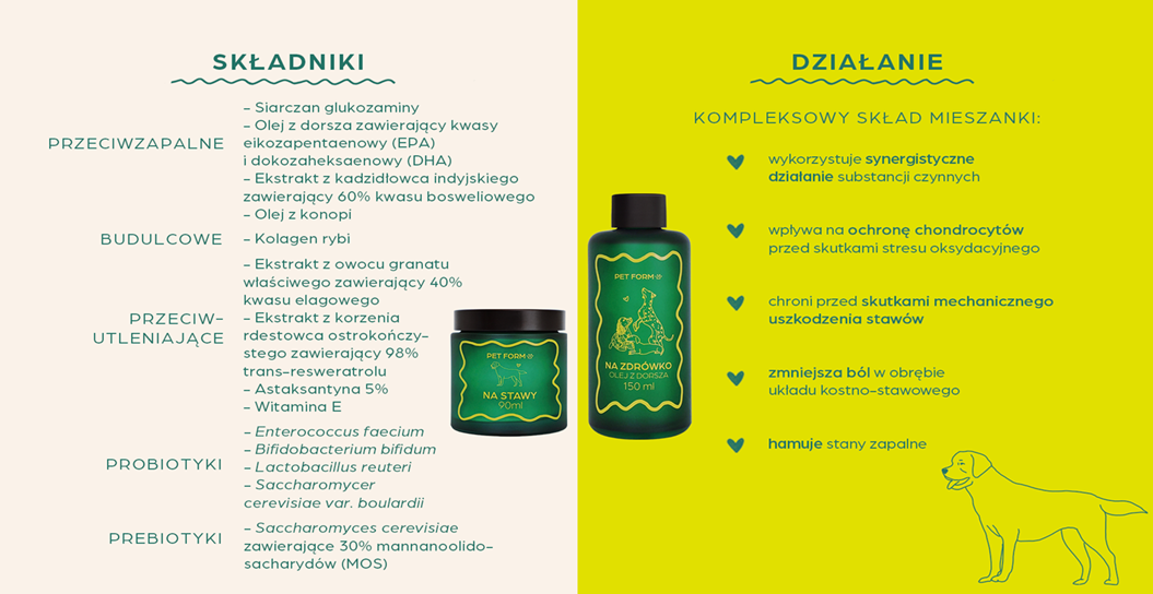 • dla psów w celu ochrony przed uszkodzeniami chrząstki stawowej