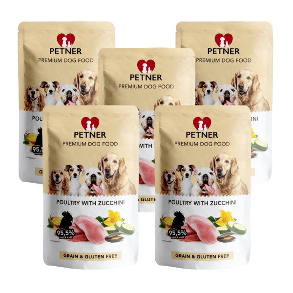 -5,00 zł Pakiet Dodaj do listy życzeń Szybki podgląd Dodaj do porównania Karma dla psa Petner PETNER - Zestaw 5x500G - Drób z cukinią Kup teraz Cena podstawowa 59,50 zł -5,00 zł Cena 54,50 zł Najniższa cena: 59,50 zł -5,00 zł Petner Drób z Cukinią – Pełnoporcjowa karma dla psa 95,5% mięsa i podrobów drobiowych w bulionie własnym z dodatkiem cukinii, cykorii i omułka...